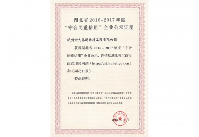 隨州市九易通路橋工程有限公司于2000年12月由原隨州市公路工程處改制組建,注冊資本金1億元,以公路工程施工為主導經(jīng)營方向,主要從事公路工程、市政工程施工、測繪、公路養(yǎng)護、工程機械設備租賃、農墾整治等業(yè)務,是隨州市唯一一家具備公路工程施工總承包壹級、公路路基和路面工程專業(yè)承包壹級資質的企業(yè)。公司連續(xù)6年被省、市市場監(jiān)督管理部門授予“守合同重信用單位”,連續(xù)多年被湖北省交通運輸廳評定為公路信用評價“A”級企業(yè),被湖北省稅務部門授予“納稅信用A級證書”,先后通過了ISO9001質量管理體系、ISO140001環(huán)境管理體系和GB/T28001職業(yè)健康安全管理體系認證。